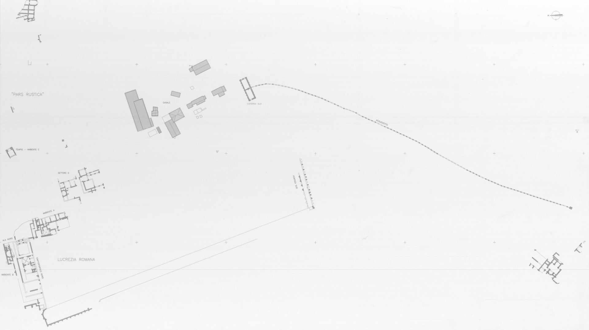 Questi resti, che presentano la stessa maniera di costruzione dei fabbricati edificati nel terzo periodo (opera mista con blocchetti di peperino) fanno parte del muro perimetrale di un ambiente con le pareti e il pavimento rivestiti di opus signinume orientato da nord a sud. All’esterno i muri erano rinforzati da speroni, di cu due sono ancora conservati nel tratto scoperto accanto alla casa dei coloni. Il livello di pavimento di questo edificio corrisponde a quello delle moderne costruzioni; in questo punto il terreno originale raggiungeva il suo livello più alto. Dato che questo edificio è situato sul punto più alto della villa ed aveva all’interno un rivestimento, si può pensare che esso fosse destinato ad una conserva d’acqua contemporanea al periodo di massimo sviluppo edilizio della villa, che data alla seconda metà del II sec.